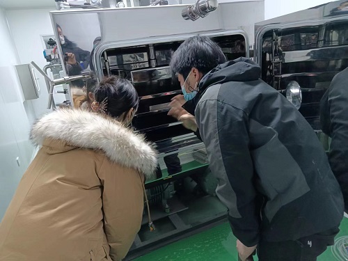 2022年12月10日,我廠技術(shù)人員前往天津現(xiàn)代職業(yè)技術(shù)學(xué)院購置的回轉(zhuǎn)式超聲波洗瓶機(jī)、高溫滅菌隧道烘箱、冷凍干燥機(jī)進(jìn)行安裝調(diào)試,并就設(shè)備的使用對學(xué)校老師進(jìn)行培訓(xùn)。