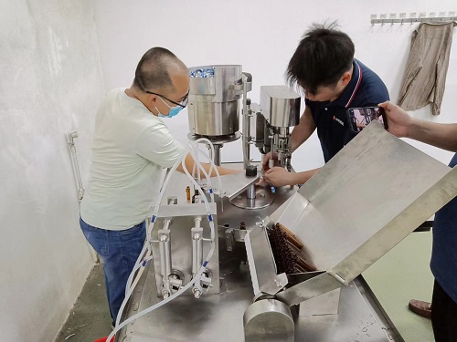 2022年6月15日,外省設(shè)備調(diào)試地點福建省泉州醫(yī)學(xué)高等??茖W(xué)校,我廠安排技術(shù)人員周武前往,對其購置的口服液灌軋一體機等設(shè)備進行了安裝調(diào)試,隨后指導(dǎo)學(xué)校相關(guān)老師對設(shè)備的使用和實際操作,并就設(shè)備的維護保養(yǎng)及注意事項做了詳細的講解。