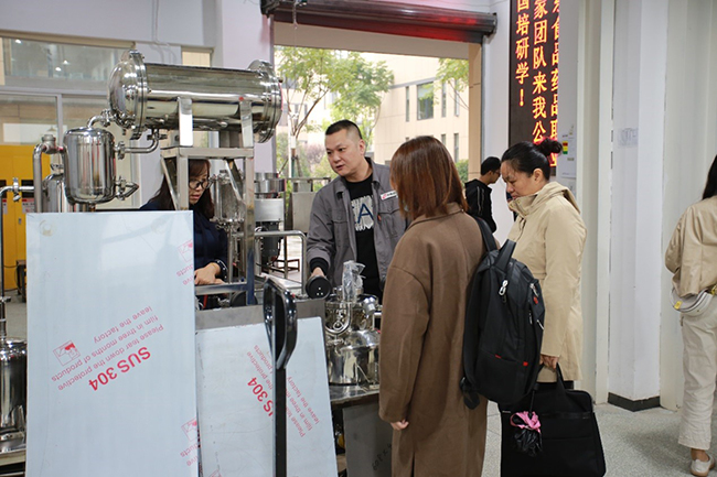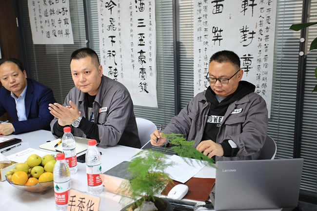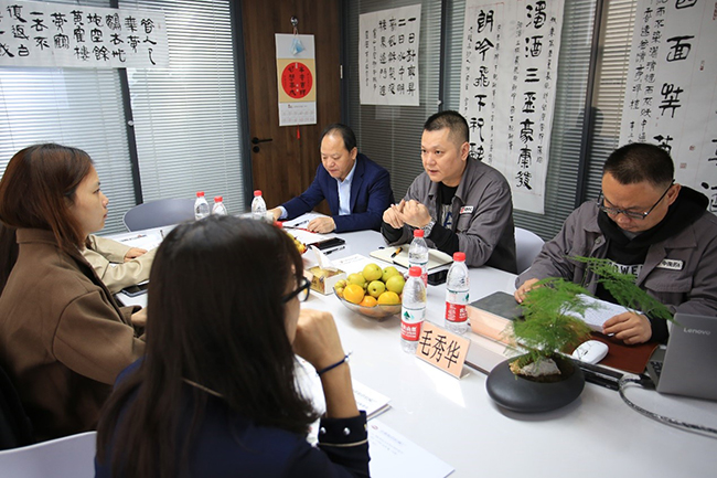 毛秀華老師一行人首先深入我公司設(shè)備生產(chǎn)車(chē)間、設(shè)備展廳進(jìn)行了參觀,并對(duì)設(shè)備的工藝和使用提出了寶貴的意見(jiàn),隨后交流團(tuán)成員在二樓會(huì)議室聽(tīng)取了總經(jīng)理何靖之匯報(bào)了設(shè)備生產(chǎn)研發(fā)、整體運(yùn)行、產(chǎn)品質(zhì)量等相關(guān)情況,銷(xiāo)售經(jīng)理李玉冰著重介紹了目前“1+X”項(xiàng)目的開(kāi)展工作。雙方就設(shè)備更新、產(chǎn)品質(zhì)量、“1+X”項(xiàng)目的合作等方面展開(kāi)了研討。