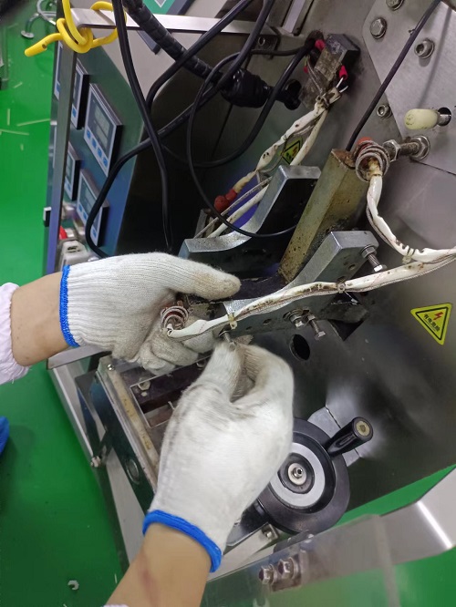8月17日,我廠派技術人員周武與何軍亮前往長沙能峰生物科技有限公司,對粉劑包裝機設備進行檢查維修。技術人員到達現(xiàn)場后,對設備進行檢查的過程中,對有問題的配件進行更換,使其設備恢復正常運轉(zhuǎn)生產(chǎn),隨后對該設備日常維護向使用者進行了講解及其注意事項。