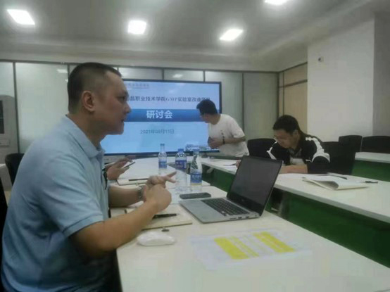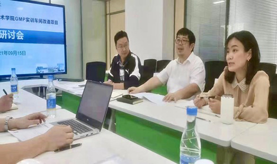 2021年9月15日,時隔半月,總經(jīng)理何靖之一行人再次前往江蘇食品藥品職業(yè)技術(shù)學(xué)院,向制藥工程學(xué)院的領(lǐng)導(dǎo)及專家組匯報1+X藥物制劑設(shè)備選型方案,研討會上,經(jīng)過詳細溝通、熱烈討論、實地勘測,初步擬定藥物制劑方案,為下一步細化方案打好基礎(chǔ)。